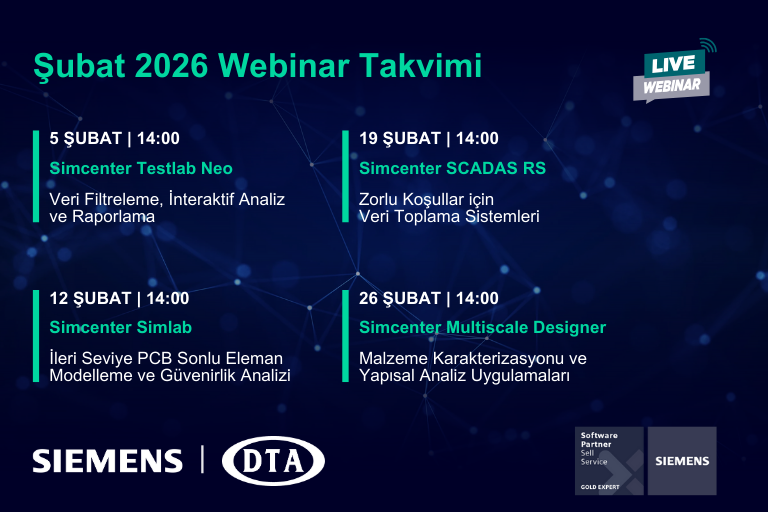 DTA Mühendislik olarak Siemens Digital Industries Software iş birliği ile Şubat ayı boyunca Simcenter portföyündeki gelişmiş test ve simülasyon çözümlerini her hafta farklı bir uzmanlık…